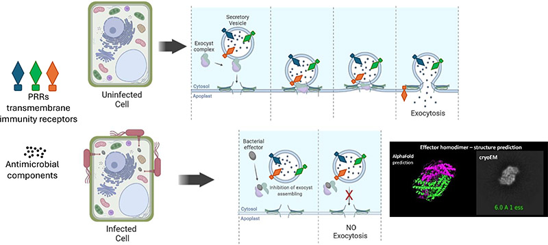 One of the major challenges facing humankind in the 21st century is how to feed a growing population that may exceed 9.5 billion people by 2050. This needs to be done using the same or even less natural resources, because water and land are used in the increasing urbanization of the world. This implies that plant productivity needs to increase dramatically and that preventing crop losses from diseases will therefore be crucial to ensuring global food security. Plant diseases, caused by pathogenic microorganisms, reduce the yield of the world’s most important food crops, causing loss up to 40% of their annual production. One of the main reasons that plant diseases continue to cause such damage is that disease resistance introduced by plant breeding, in some cases is rapidly overcome by newly virulent pathogens. This problem is amplified by intensive crop cultivation techniques and mono-culture. Likewise, the loss of genomic diversity during the transition from wild to cultivated crop populations, enhances this problem. In order to minimize crop losses due to plant diseases we need new knowledge regarding the mechanisms underpinning microbe recognition by plants. This requires, on the one hand, to understand the biology of microbial pathogenesis and the virulence proteins they target into host cells to cause disease. From the other hand, to elucidate the mechanisms by which the resistant plants successfully defend themselves from attack.